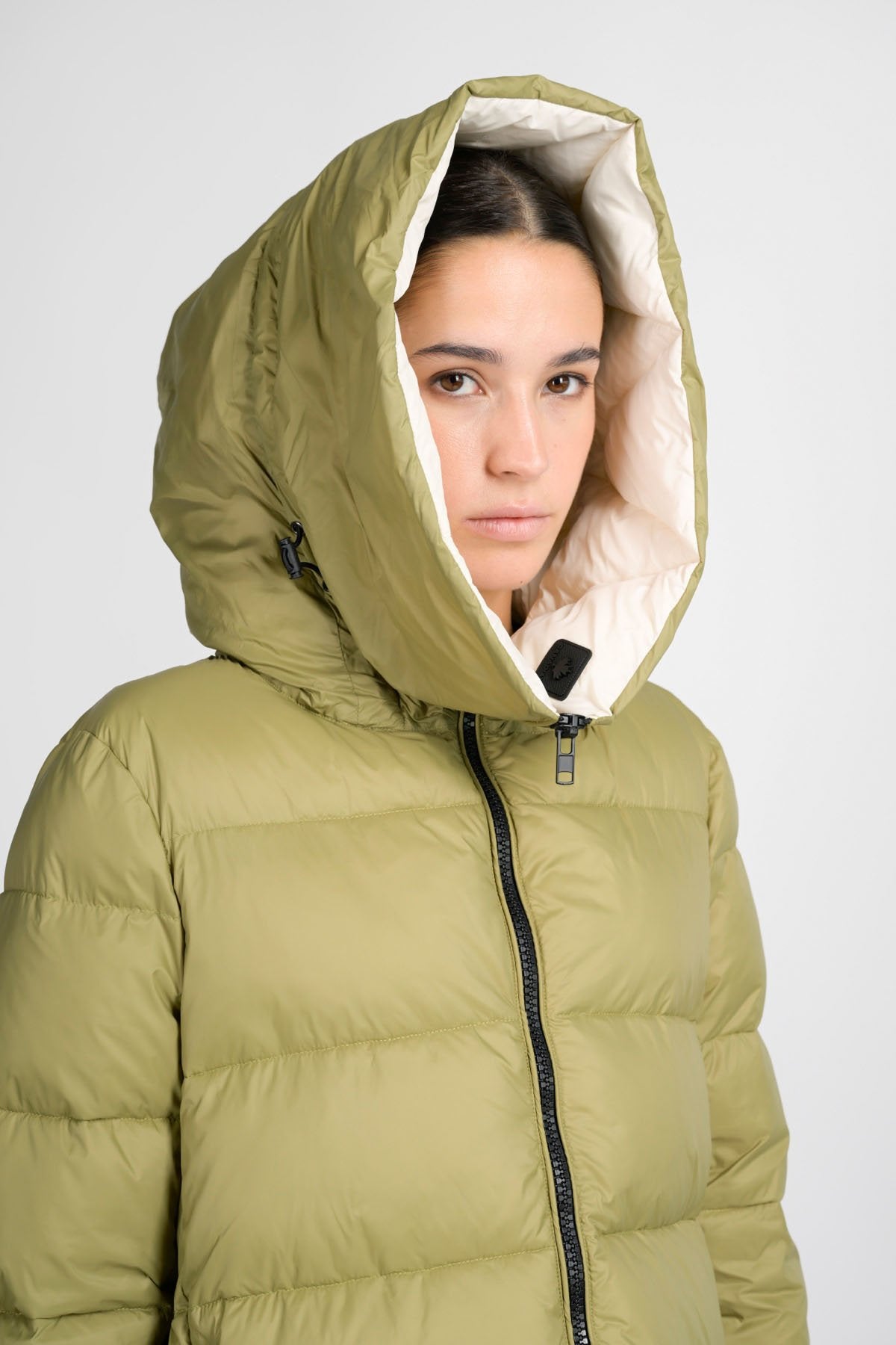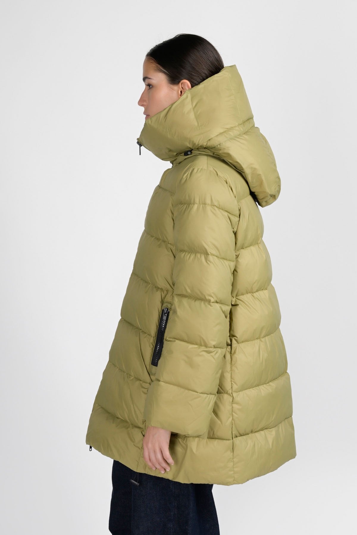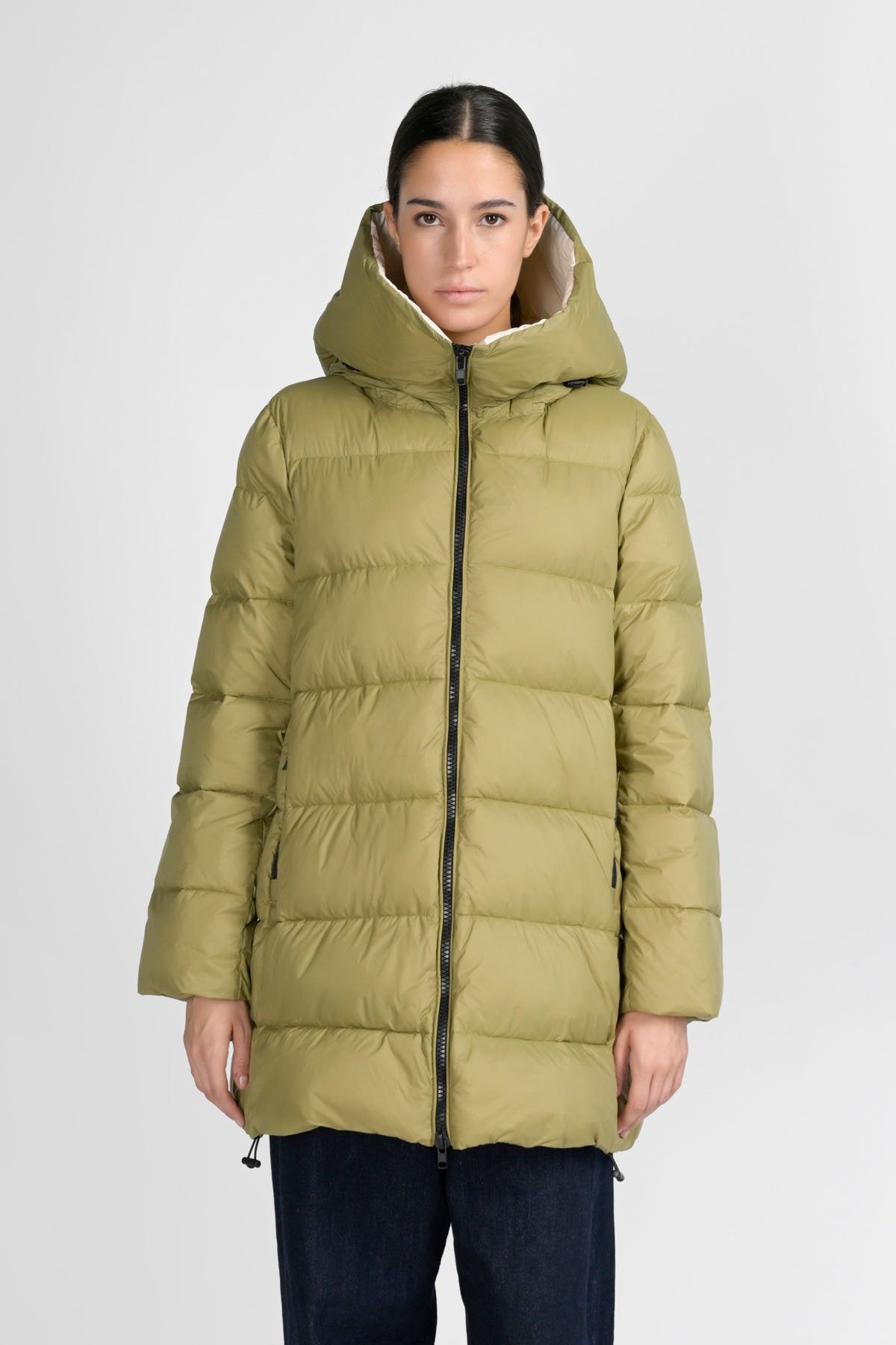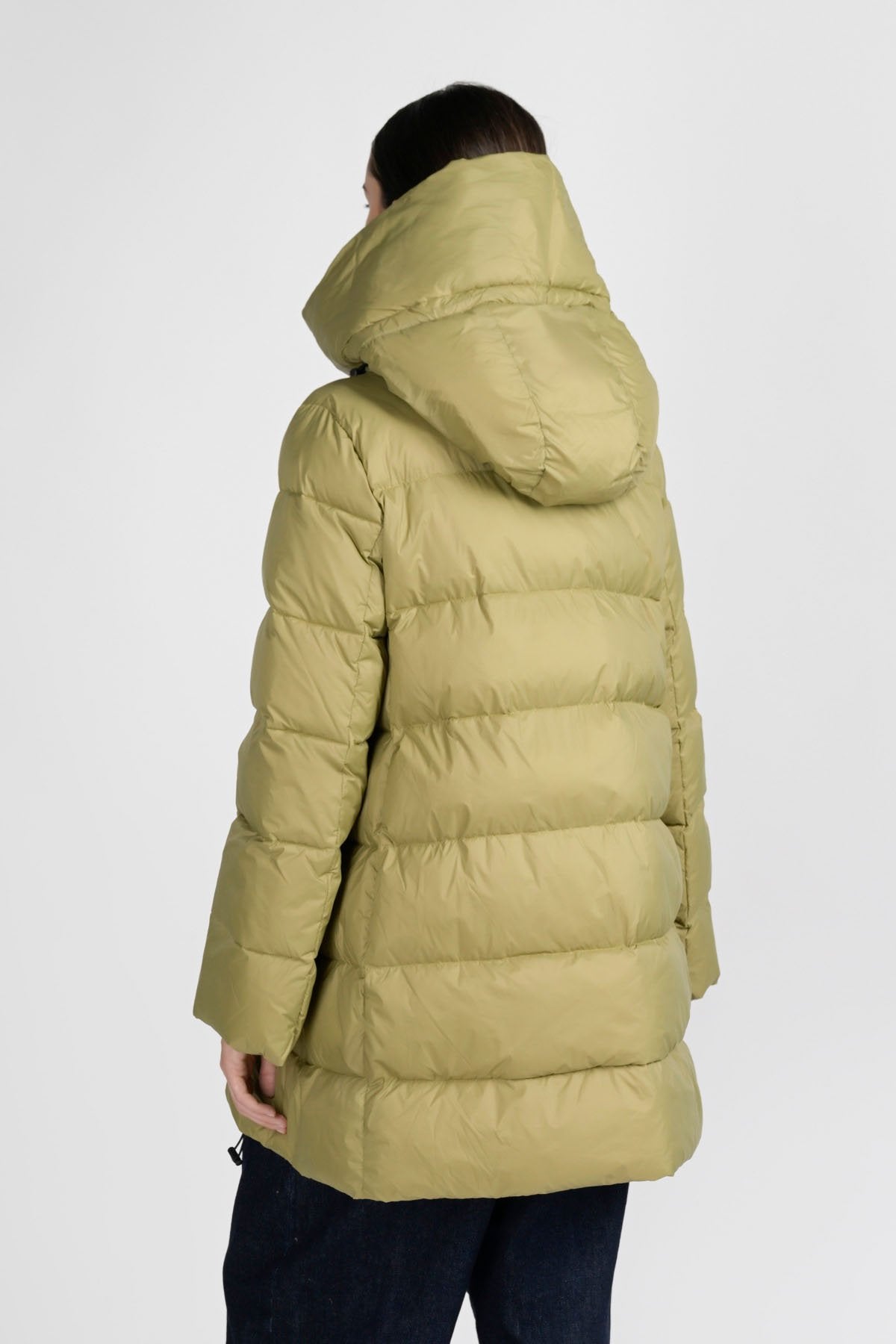 Volete stare al caldo, senza rinunciare all'eleganza? Questo piumino imbottito lungo fa sicuramente al caso vostro. I materiali che lo compongono: nylon al 100% per l'esterno e una fibra sintetica proveniente da materiali riciclati per l'interno, lo rendono super leggero, ma anche super caldo. Il cappuccio integrato imbottito e una coulisse sul fondo permettono di chiuderlo completamente, lasciando all'esterno vento e freddo. Perfetto per i weekend in montagna, abbinato ad outfit e accessori eleganti, non vi farà sfigurare nelle occasioni più formali.