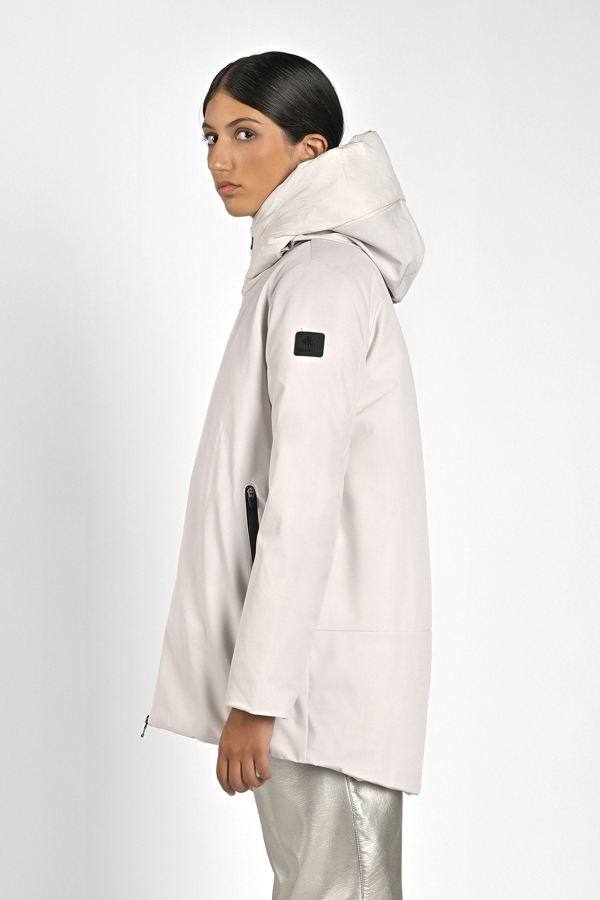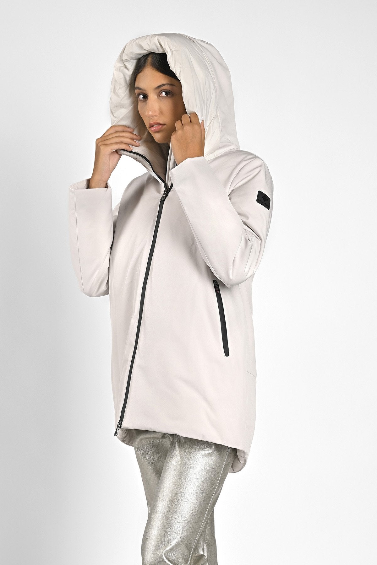 Questo giaccone imbottito è realizzato interamente in poliestere, con una piccola percentuale di elastane che rende più confortevoli i movimenti anche quando si indossa sopra un blazer o una maglia pesante. Quindi, non esitate ad abbinarlo ai vostri outfit più formali, completi e camicie eleganti, ma anche a quelli più casual: jeans e un bel maglione di cashmere. Ha un cappuccio fisso e il collo ad imbuto che offrono un'ulteriore protezione contro il freddo e il vento.