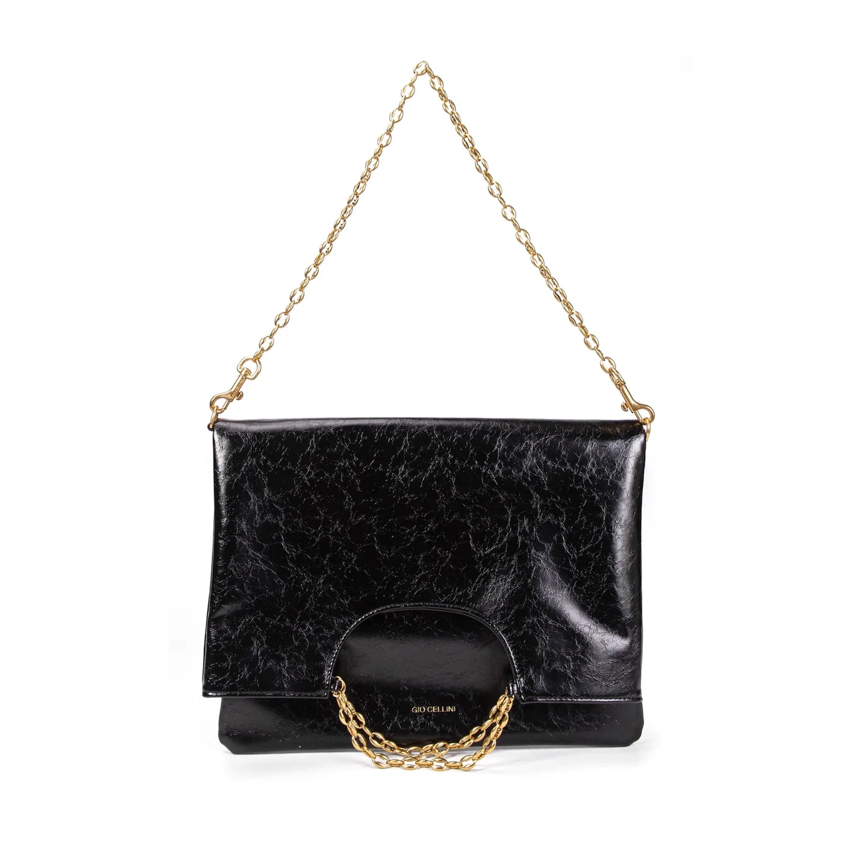 Maxi bag in ecopelle effetto vintage con logo embossed finitura dorata