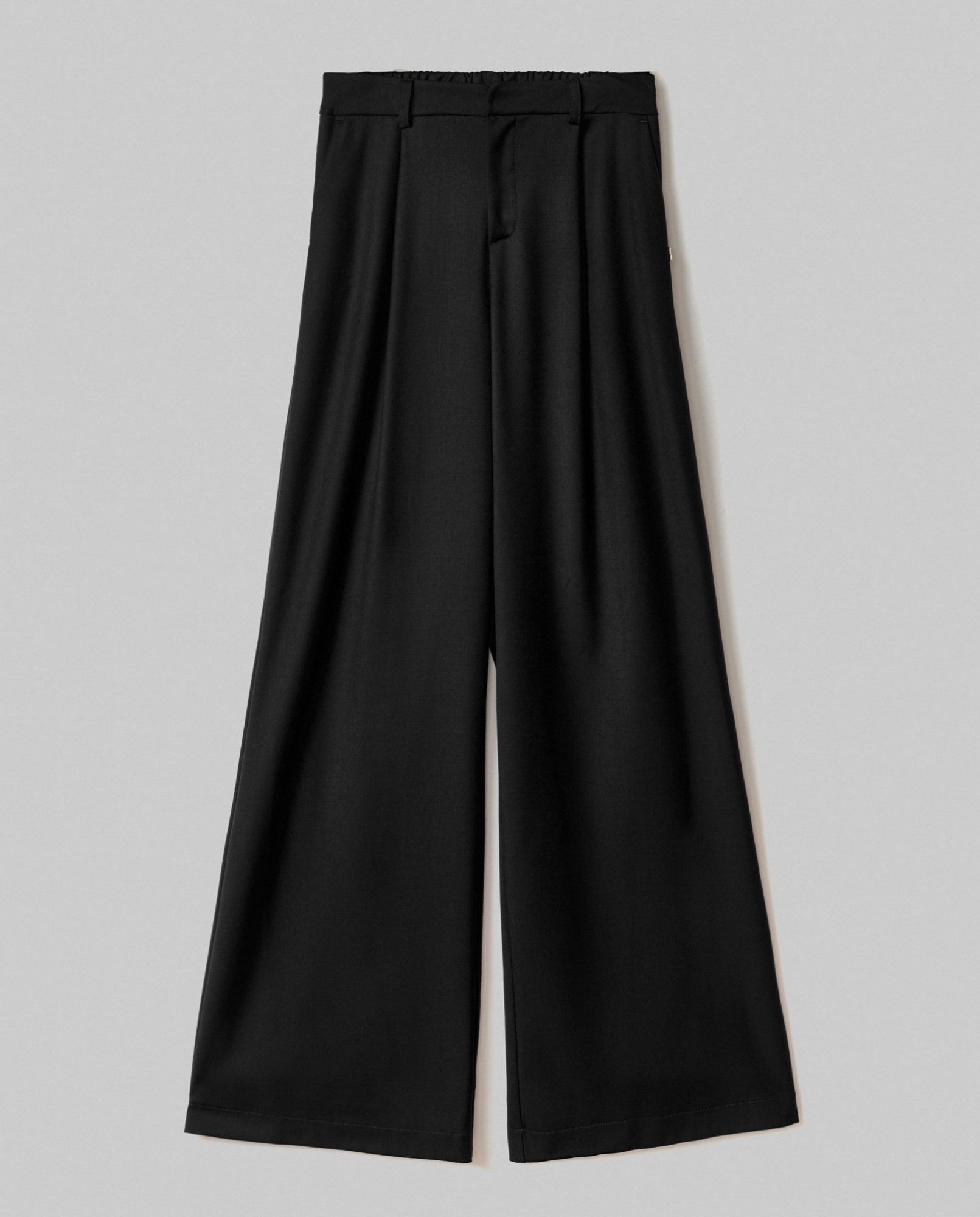 Pantalone Over In Twill Con Pences E Elastico Sul Dietro • Nero