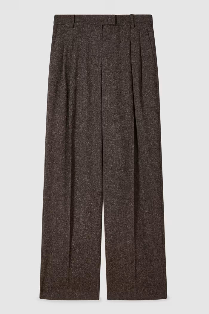 Pantaloni palazzo realizzati in tessuto strutturato con effetto bottonato per una texture materica dall'appeal moderno. Il design sartoriale con pieghe incontra il gusto urban del fit rilassato. Indossali con la maglia abbinata e i mocassini Square per un completo dall'attitude boyish e completa con accessori statement per un twist rock.