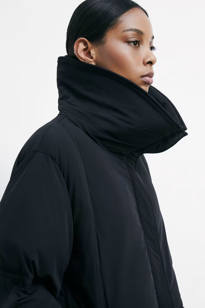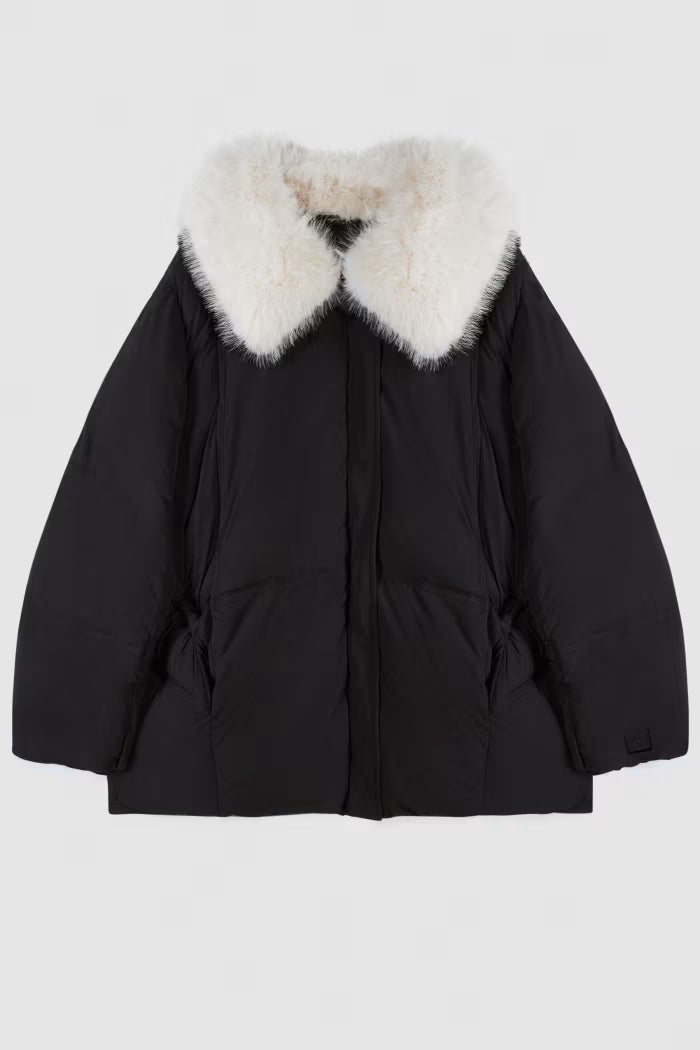 Piumino avvolgente dal design moderno, con colletto morbido e removibile, realizzato in tessuto extra comfort. Il fit over e il taglio corto ne esaltano la versatilità: indossalo su un mini dress con stivali alti per un contrasto sofisticato, oppure abbinalo ai tuoi look daily glam nelle giornate più fredde.