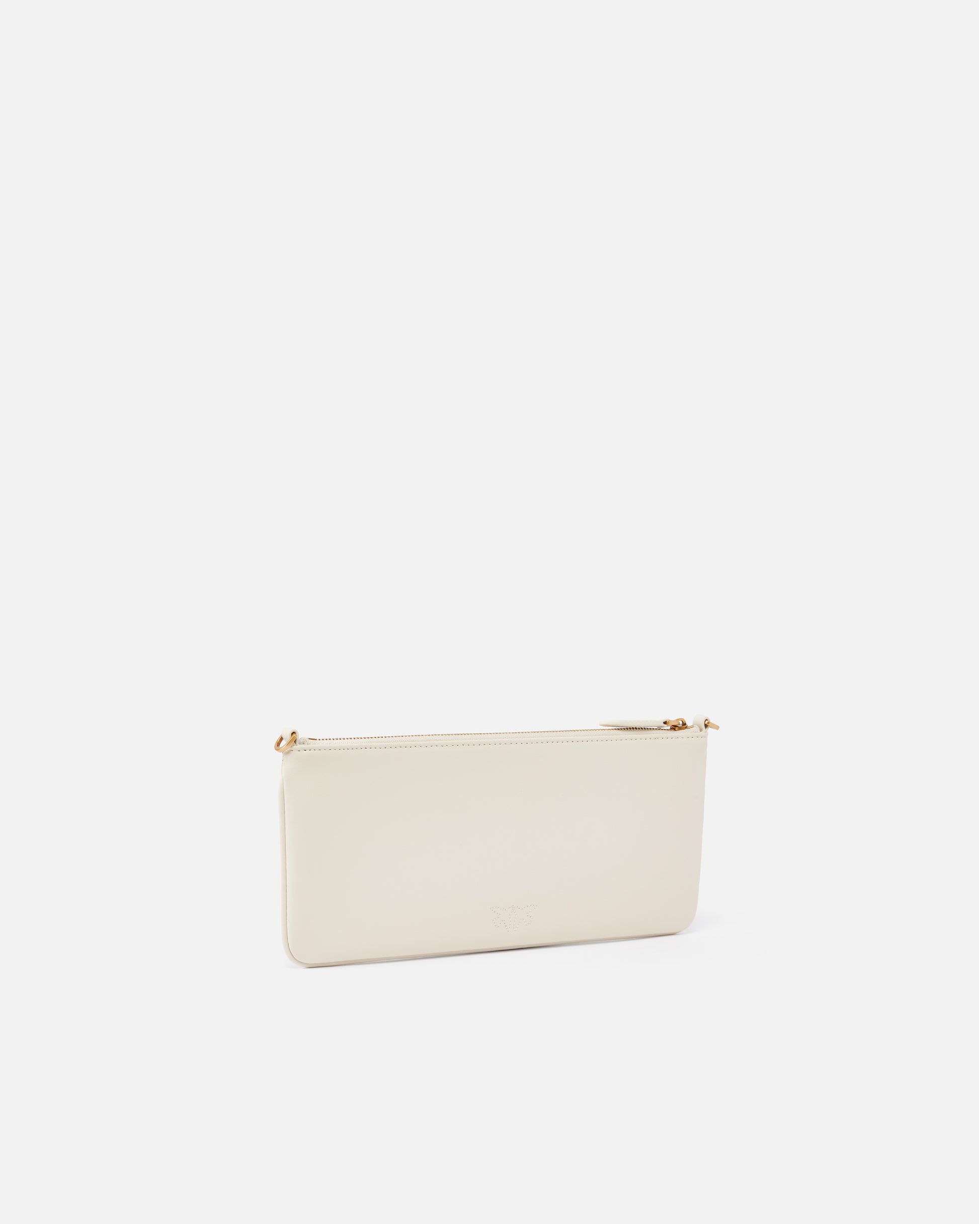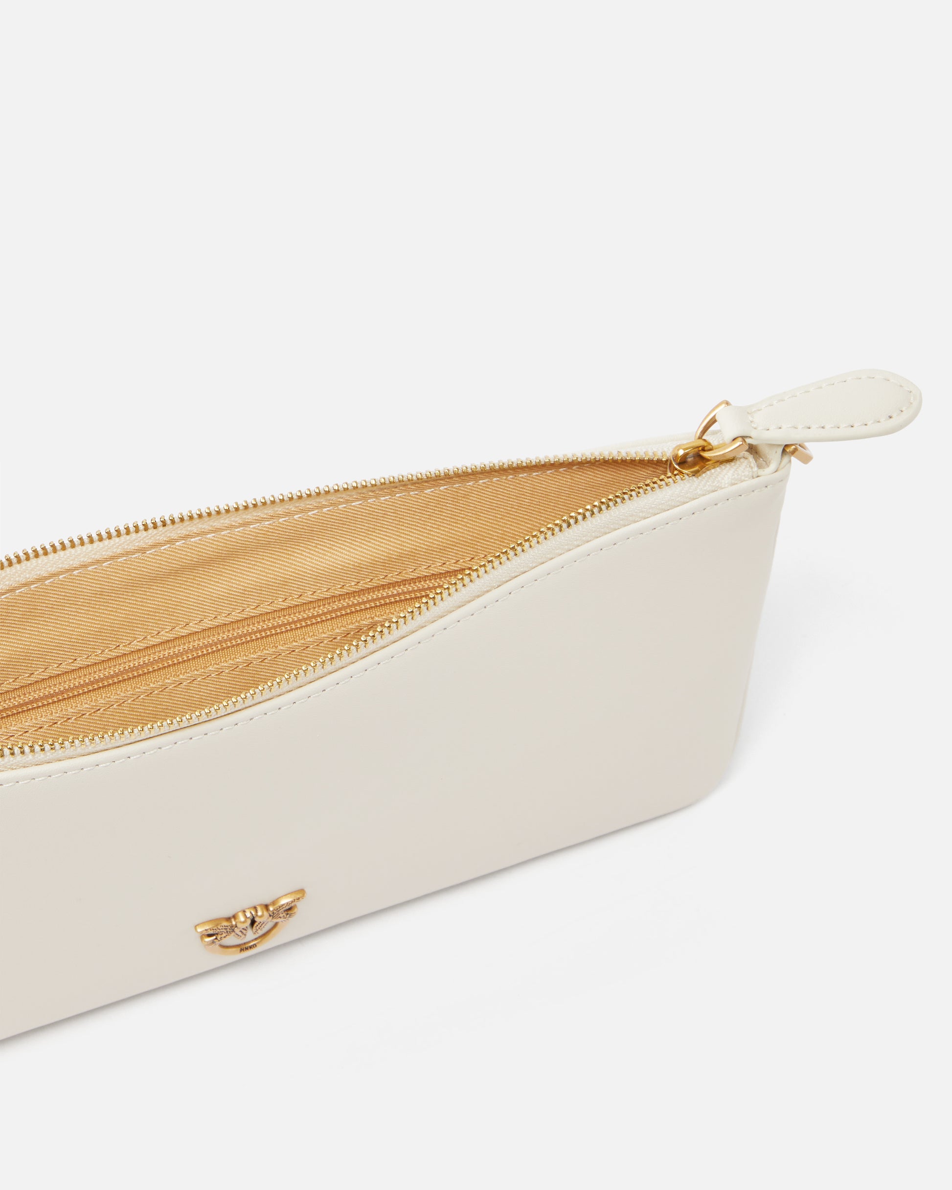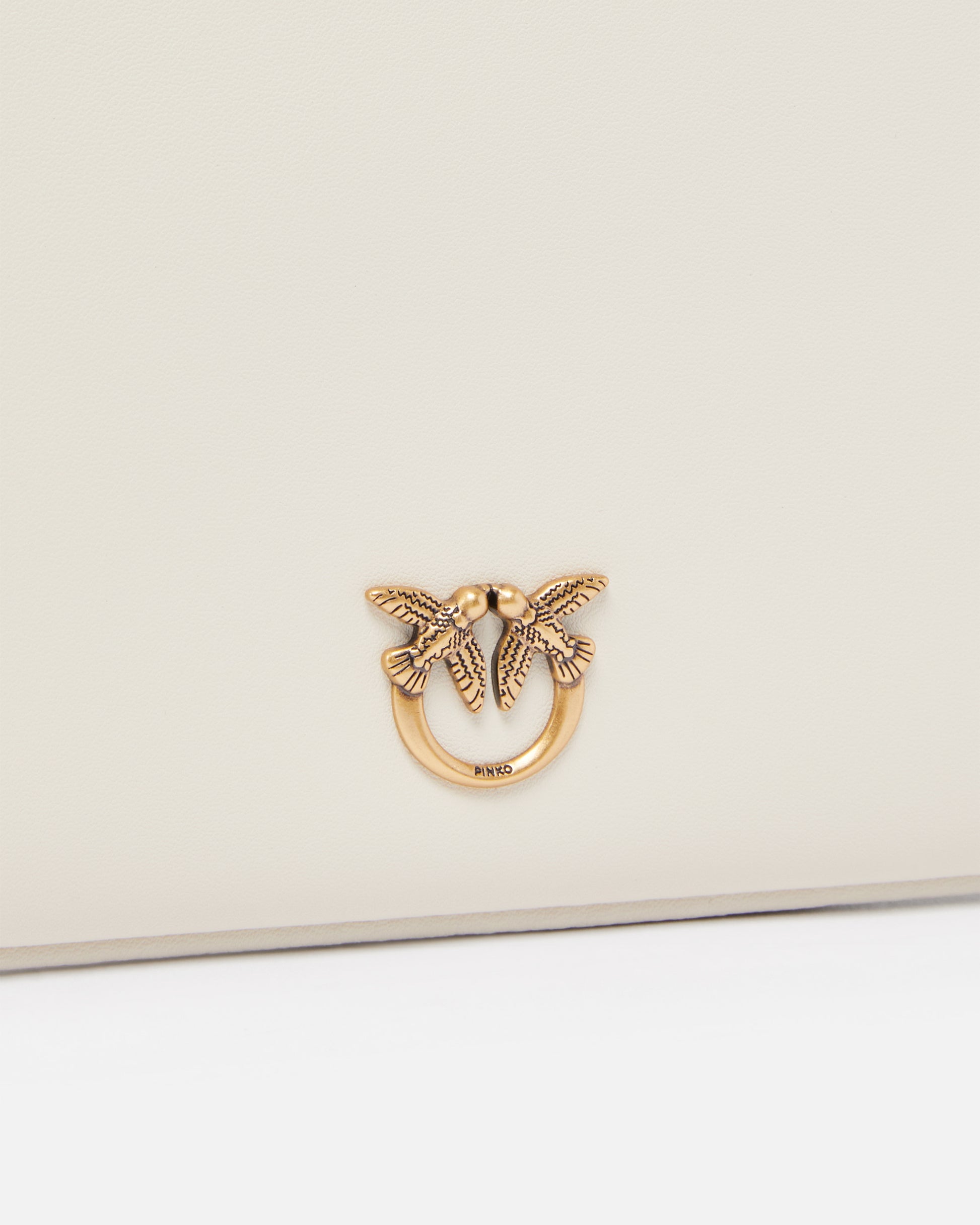 Borsa a tracolla flat dalla linea allungata in morbida pelle mano seta. Personalizzazione con placchetta Love Birds Diamond Cut, galvanica antique gold. Interno foderato in polycotton e tracolla a catena sottile. Chiusura con zip. Attiva la tua borsa PINKO: verifica l'autenticità del tuo prodotto e accedi all'esperienza personalizzata avvicinando il tuo smartphone al ricamo Love Birds che trovi sul retro della borsa!