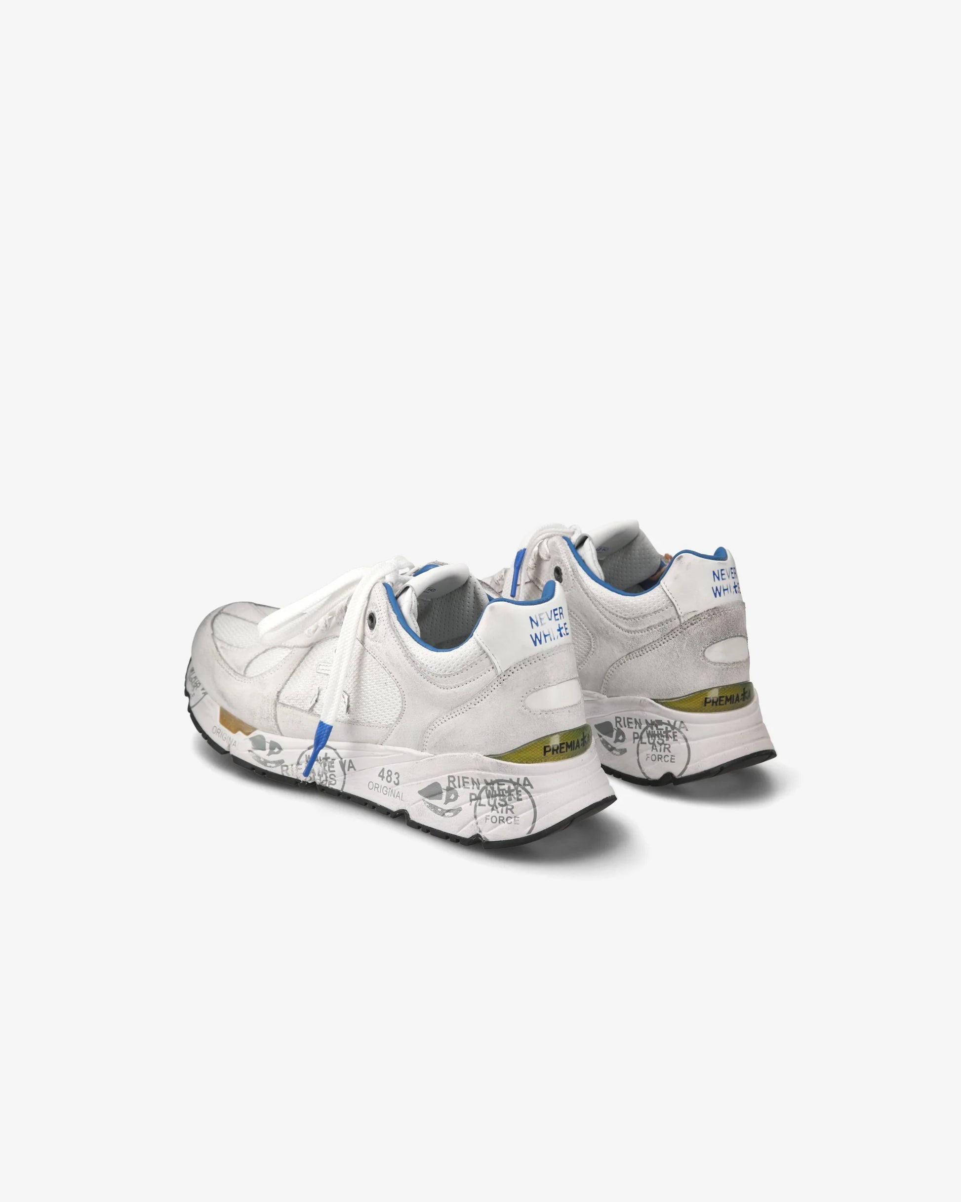 Sneakers Mase risentono del mood nineties, combinano una silhouette vintage con materiali pregiati e dettagli vivaci. Fedeli al design Premiata, ne conservano tutti gli elementi chiave: il logo che decora i laterali, la scritta MASE che si evince sull’etichetta, trattamenti e dettagli a contrasto che ne risaltano la visibilità.